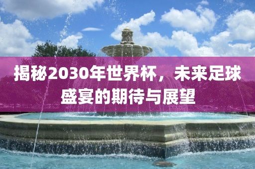 摘要:本文将为您揭秘即将到来的2030年世界杯足球盛宴。展望未来,我们期待这场足球盛宴将带来前所未有的精彩对决和激动人心的时刻。从准备工作到比赛细节,从参赛队伍到球迷热情,都将展现出足球运动的魅力和活力。本文还将探讨未来足球发展的前景和趋势,让我们共同期待这场充满激情和荣耀的体育盛事。