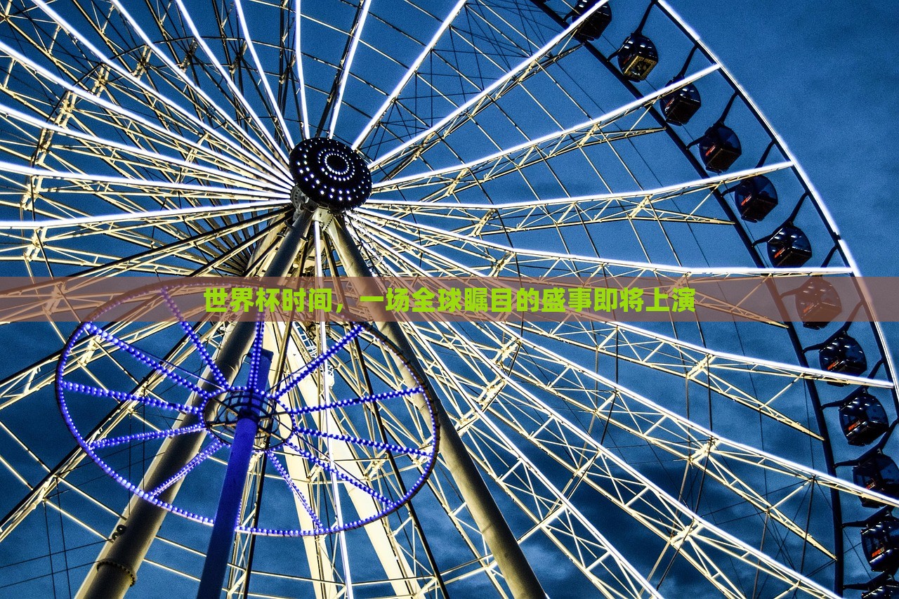 世界杯时间即将来临,让我们共同期待这场全球盛事的到来,通过本文的介绍,相信您对世界杯的时间安排有了更详细的了解,让我们锁定比赛时间,与全球球迷一起分享这场足球盛宴的激情与欢乐!